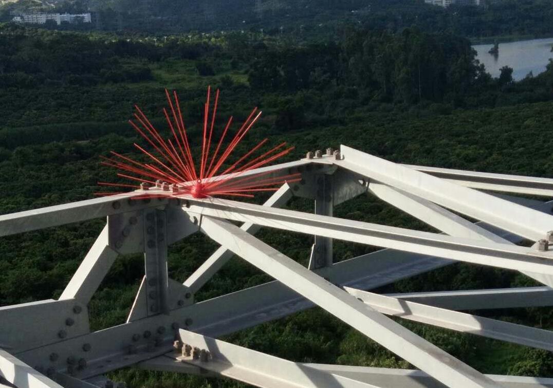 2、將插好刺體的驅鳥刺放置于需要防鳥的地方,(鳥刺需要和平面的鐵塔橫擔接觸)