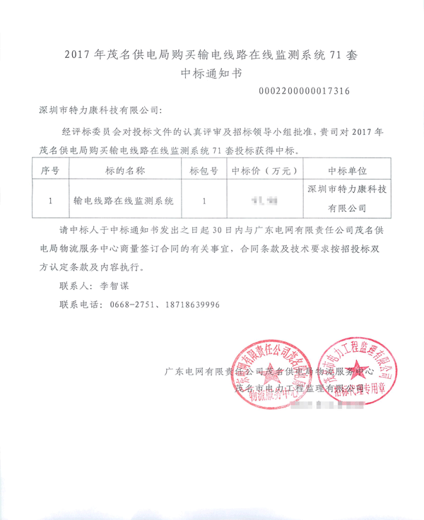 特力康中標國網黑龍江送變電工程公司的2024年度第18次物資類競爭性談判采購項目——慶陽驅鳥器物資框 特力康中標國網甘肅省電力公司省管產業單位2024年第五次物資競爭性談判授權采購項目 中標喜訊:深圳市特力康科技有限公司成功入圍許繼集團綜合能源公司輸電線路視頻在線監測裝置模塊集采項目 中標喜訊:特力康成功中標國網重慶市電力公司渝中一片區項目 特力康成功中標國網天津市電力公司2024年第二次?物?資招標項目 特力康中標國網安徽省電力有限公司蕪湖供電公司2024年3月非物質采購項目 蜀道巡線不用“爬”:特力康視頻在線監測裝置守護四川輸電鐵塔 風雪中的 “防冰哨兵”:內蒙古電力用特力康監測系統筑牢覆冰防線 雙軸感知護塔穩:山西電力用特力康裝置破解采空區傾斜難題 江西電力裝上 “智能防鳥衛士”—— 特力康綜合激光驅鳥器破解湖區變電站鳥害難題 破解巡檢難題:貴州電力用特力康 AI 微拍裝置,精準捕捉線路隱性隱患 精準捕捉 “微氣象”:浙江電力用特力康預警系統筑牢電網氣候防線 守護 “電力咽喉”:湖南電力投用百套特力康三跨 4G 監控球,筑牢安全防線 貴州電力裝特力康電網架空線路覆冰監測系統,精準防冰保電網過冬? 寧夏配電線路安裝了我司防外破電子化智能警示牌