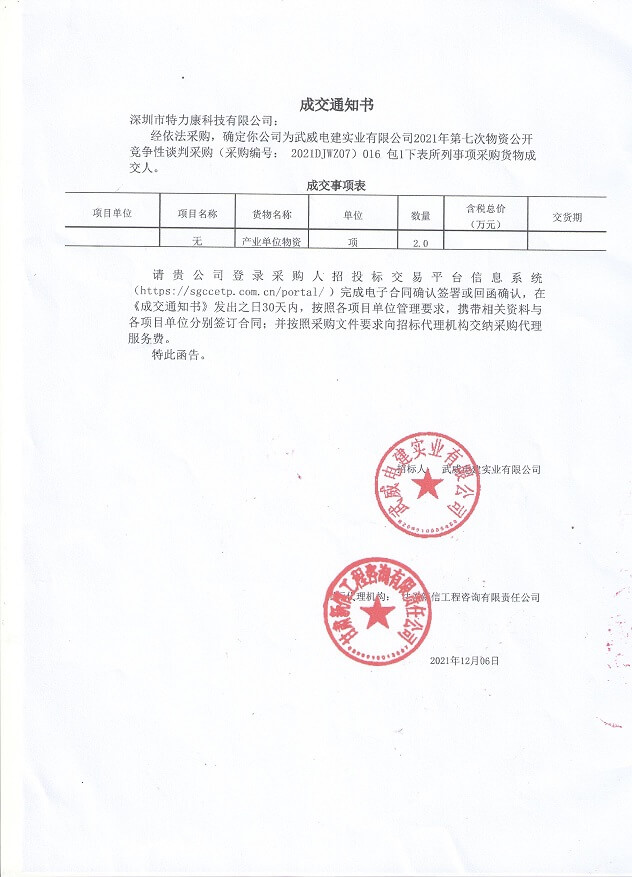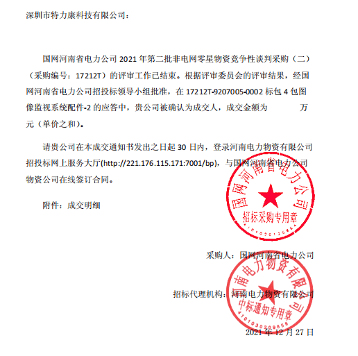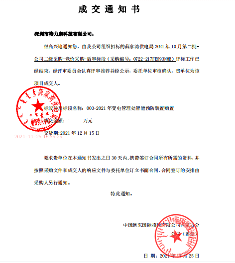 特力康中標國網黑龍江送變電工程公司的2024年度第18次物資類競爭性談判采購項目——慶陽驅鳥器物資框 特力康中標國網甘肅省電力公司省管產業單位2024年第五次物資競爭性談判授權采購項目 中標喜訊:深圳市特力康科技有限公司成功入圍許繼集團綜合能源公司輸電線路視頻在線監測裝置模塊集采項目 中標喜訊:特力康成功中標國網重慶市電力公司渝中一片區項目 特力康成功中標國網天津市電力公司2024年第二次?物?資招標項目 特力康中標國網安徽省電力有限公司蕪湖供電公司2024年3月非物質采購項目 蜀道巡線不用“爬”:特力康視頻在線監測裝置守護四川輸電鐵塔 風雪中的 “防冰哨兵”:內蒙古電力用特力康監測系統筑牢覆冰防線 雙軸感知護塔穩:山西電力用特力康裝置破解采空區傾斜難題 江西電力裝上 “智能防鳥衛士”—— 特力康綜合激光驅鳥器破解湖區變電站鳥害難題 破解巡檢難題:貴州電力用特力康 AI 微拍裝置,精準捕捉線路隱性隱患 精準捕捉 “微氣象”:浙江電力用特力康預警系統筑牢電網氣候防線 守護 “電力咽喉”:湖南電力投用百套特力康三跨 4G 監控球,筑牢安全防線 貴州電力裝特力康電網架空線路覆冰監測系統,精準防冰保電網過冬? 寧夏配電線路安裝了我司防外破電子化智能警示牌