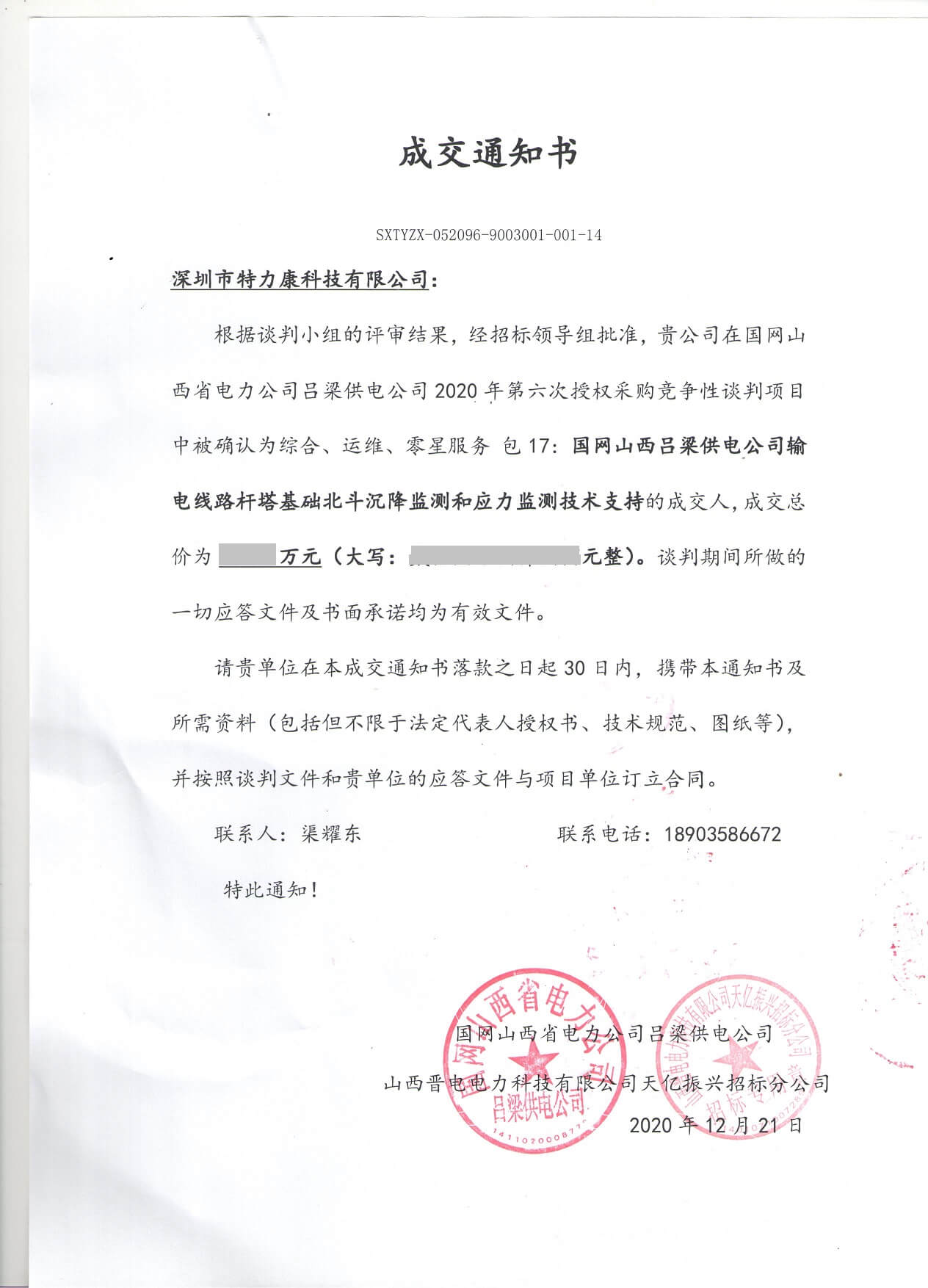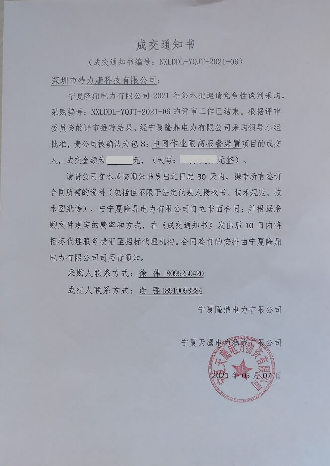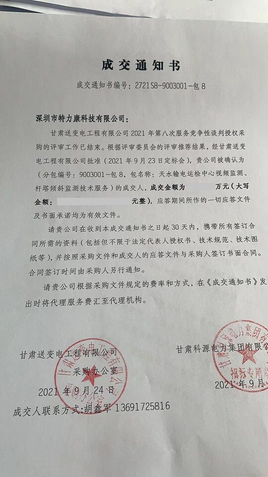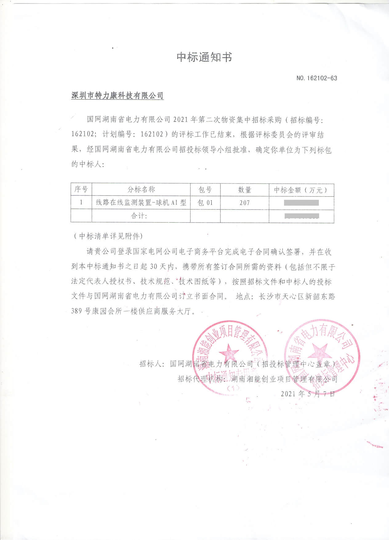 特力康中標(biāo)國(guó)網(wǎng)黑龍江送變電工程公司的2024年度第18次物資類競(jìng)爭(zhēng)性談判采購(gòu)項(xiàng)目——慶陽(yáng)驅(qū)鳥器物資框 特力康中標(biāo)國(guó)網(wǎng)甘肅省電力公司省管產(chǎn)業(yè)單位2024年第五次物資競(jìng)爭(zhēng)性談判授權(quán)采購(gòu)項(xiàng)目 中標(biāo)喜訊:深圳市特力康科技有限公司成功入圍許繼集團(tuán)綜合能源公司輸電線路視頻在線監(jiān)測(cè)裝置模塊集采項(xiàng)目 中標(biāo)喜訊:特力康成功中標(biāo)國(guó)網(wǎng)重慶市電力公司渝中一片區(qū)項(xiàng)目 特力康成功中標(biāo)國(guó)網(wǎng)天津市電力公司2024年第二次?物?資招標(biāo)項(xiàng)目 特力康中標(biāo)國(guó)網(wǎng)安徽省電力有限公司蕪湖供電公司2024年3月非物質(zhì)采購(gòu)項(xiàng)目 浙江電力裝上“氣象哨兵”:特力康裝置守護(hù)電網(wǎng)應(yīng)對(duì)臺(tái)風(fēng)暴雨 蜀道巡線不用“爬”:特力康視頻在線監(jiān)測(cè)裝置守護(hù)四川輸電鐵塔 風(fēng)雪中的 “防冰哨兵”:內(nèi)蒙古電力用特力康監(jiān)測(cè)系統(tǒng)筑牢覆冰防線 雙軸感知護(hù)塔穩(wěn):山西電力用特力康裝置破解采空區(qū)傾斜難題 江西電力裝上 “智能防鳥衛(wèi)士”—— 特力康綜合激光驅(qū)鳥器破解湖區(qū)變電站鳥害難題 破解巡檢難題:貴州電力用特力康 AI 微拍裝置,精準(zhǔn)捕捉線路隱性隱患 精準(zhǔn)捕捉 “微氣象”:浙江電力用特力康預(yù)警系統(tǒng)筑牢電網(wǎng)氣候防線 守護(hù) “電力咽喉”:湖南電力投用百套特力康三跨 4G 監(jiān)控球,筑牢安全防線 貴州電力裝特力康電網(wǎng)架空線路覆冰監(jiān)測(cè)系統(tǒng),精準(zhǔn)防冰保電網(wǎng)過(guò)冬? 寧夏配電線路安裝了我司防外破電子化智能警示牌
