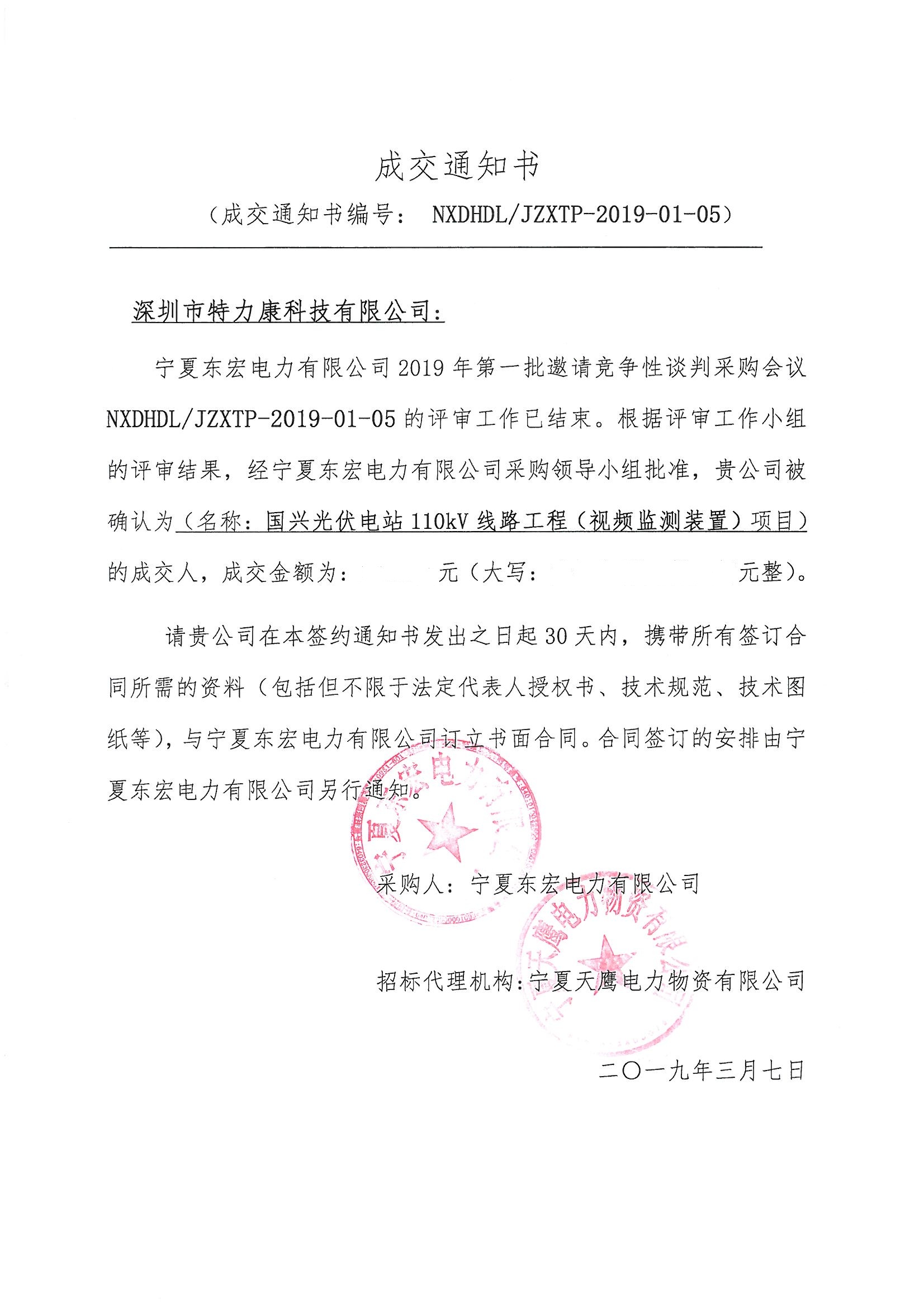 我司中標(biāo)寧夏2019年第一批邀請競爭性110kv(視頻監(jiān)控裝置)項目